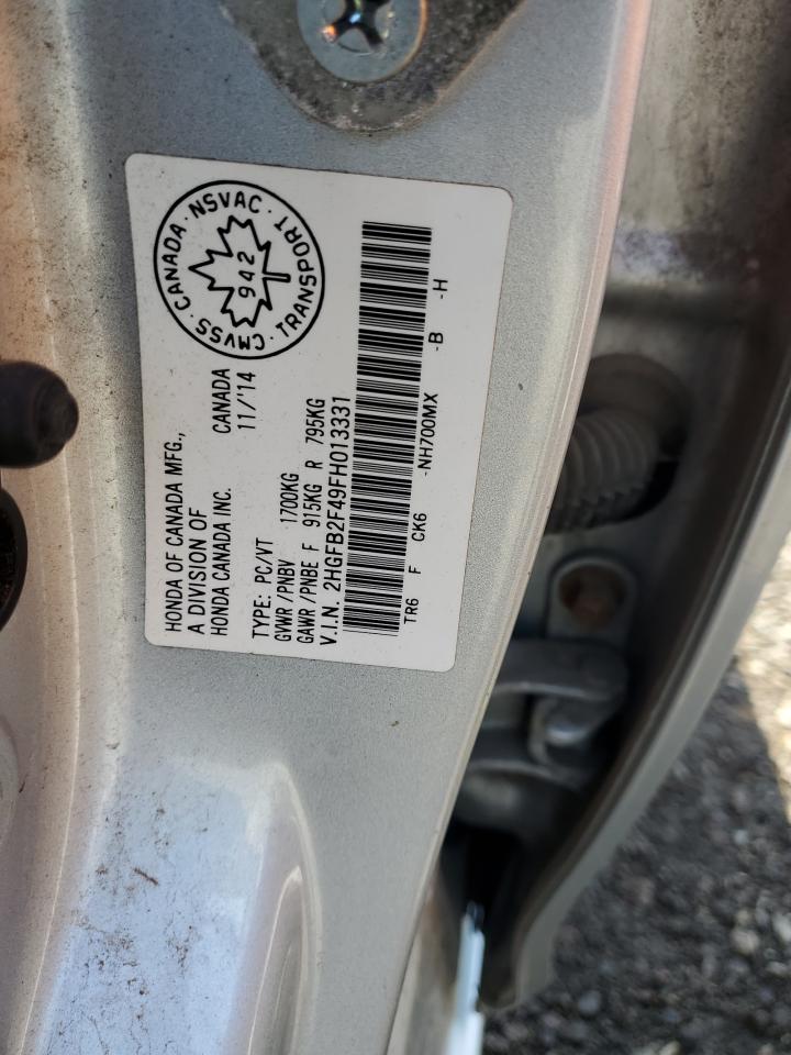 2015 HONDA CIVIC - 2HGFB2F49FH013331, колір - Срібний, 1.8, Бензин, із США
