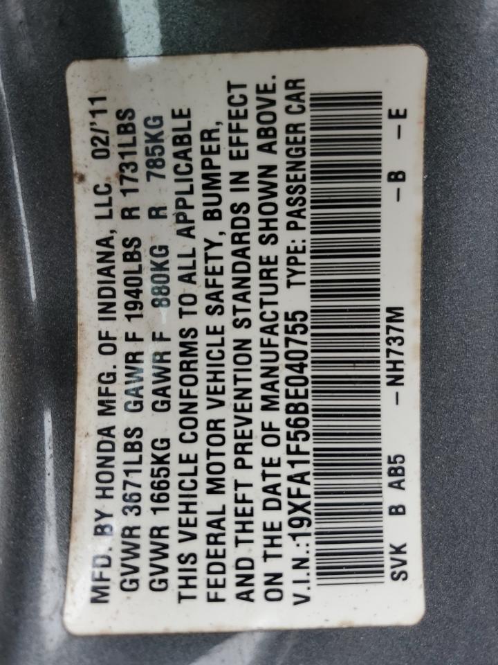 2011 HONDA CIVIC - 19XFA1F56BE040755, колір - Сірий, 1.8, Бензин, із США