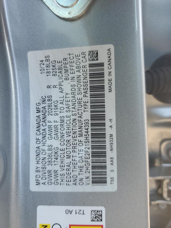 2025 HONDA CIVIC - 2HGFE2F21SH544393, колір - Срібний, 2.0, Бензин, із США