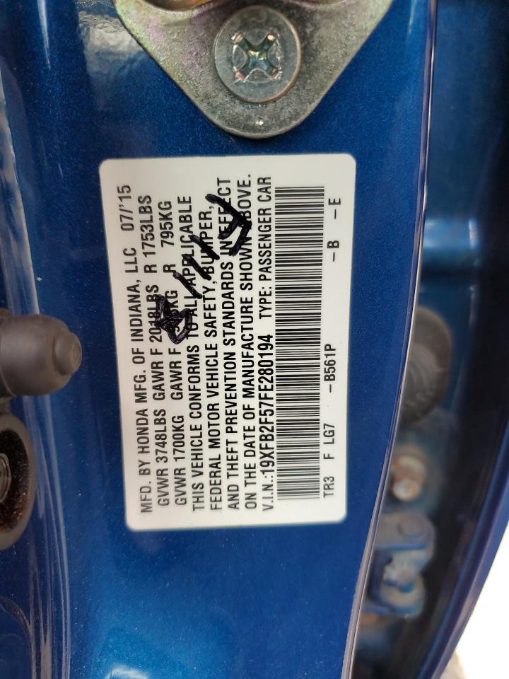 2015 HONDA CIVIC - 19XFB2F57FE280194, колір - Синій, 1.8, Бензин, із США