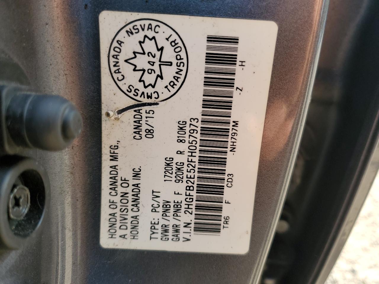 Колір СірийЦиліндри 4VIN 2HGFB2E52FH057973Стан Заводиться та їде (перевірено)Ушкодження Задня