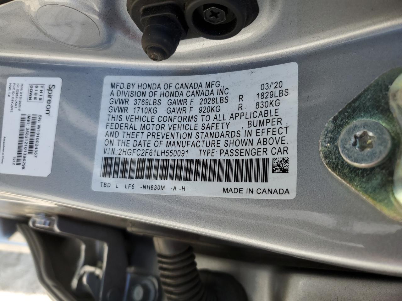 2020 HONDA CIVIC - 2HGFC2F61LH550091, колір - Срібний, 2.0, Бензин, із США