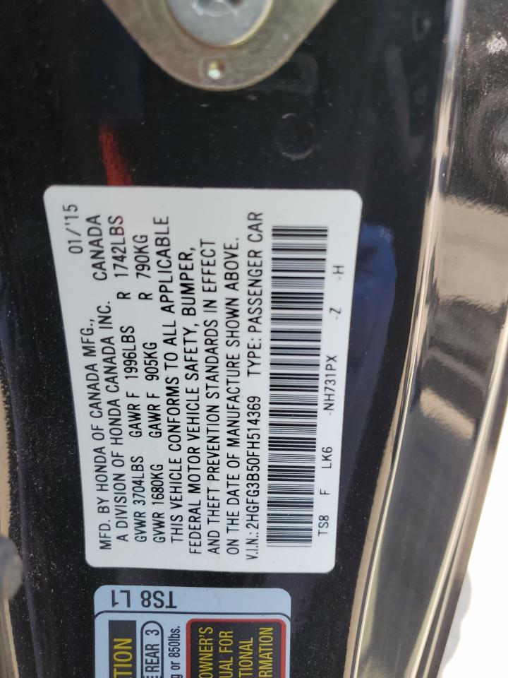 2015 HONDA CIVIC - 2HGFG3B50FH514369, колір - Чорний, 1.8, Бензин, із США