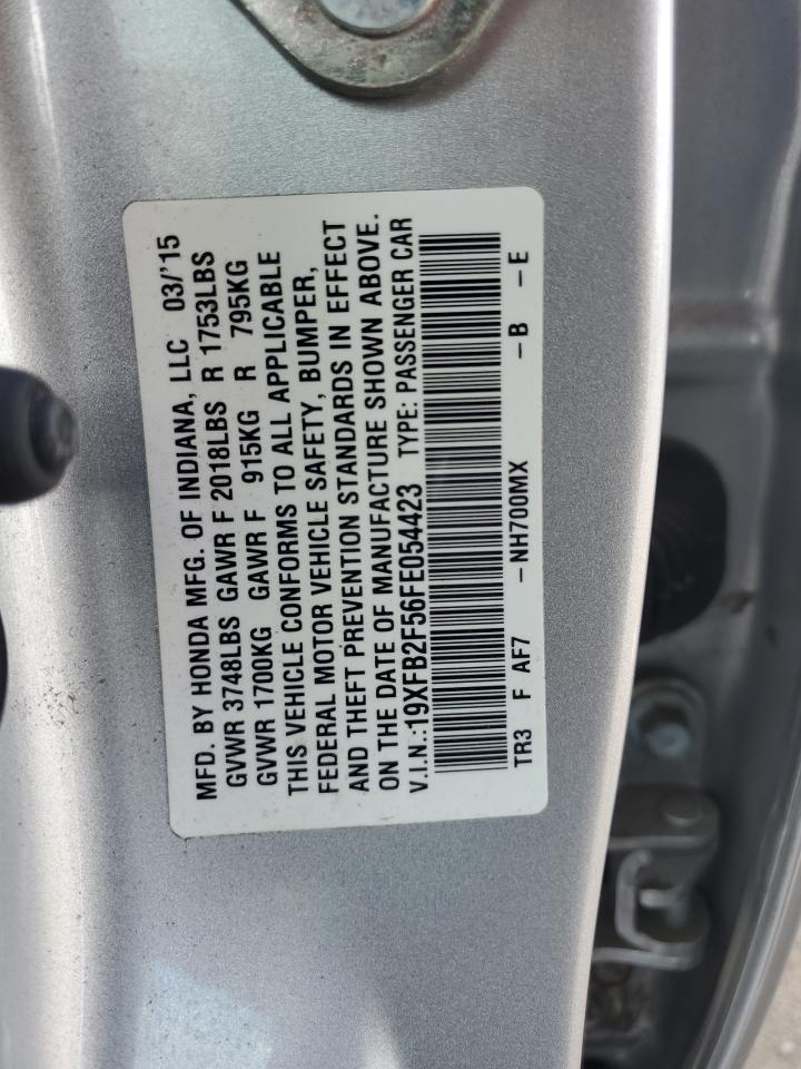 2015 HONDA CIVIC - 19XFB2F56FE054423, колір - Срібний, 1.8, Бензин, із США