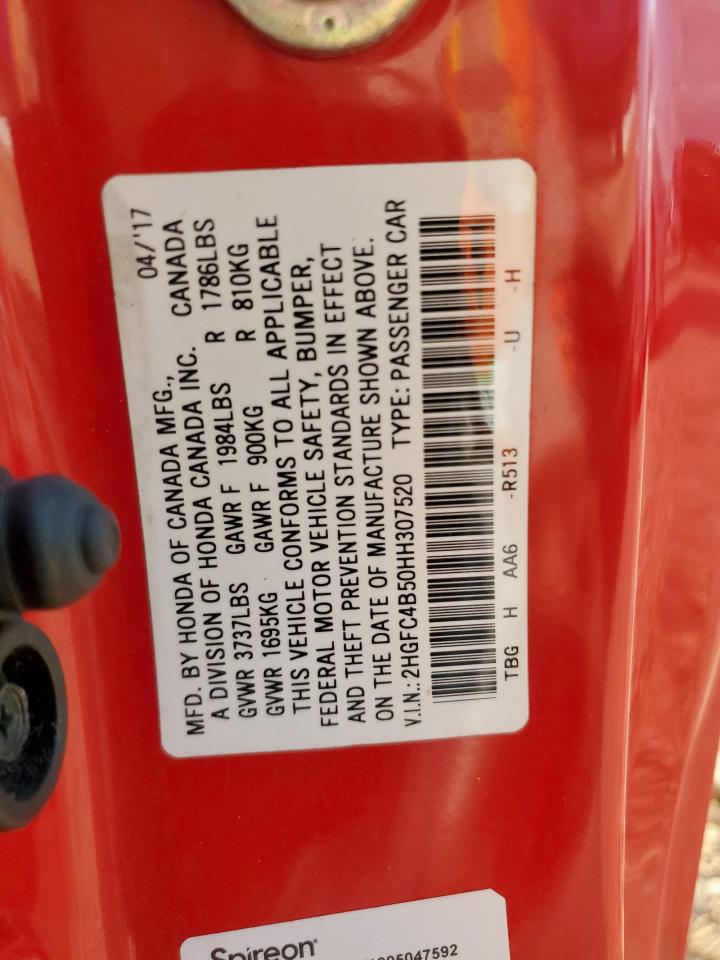 2017 HONDA CIVIC - 2HGFC4B50HH307520, колір - Червоний, 2.0, Бензин, із США
