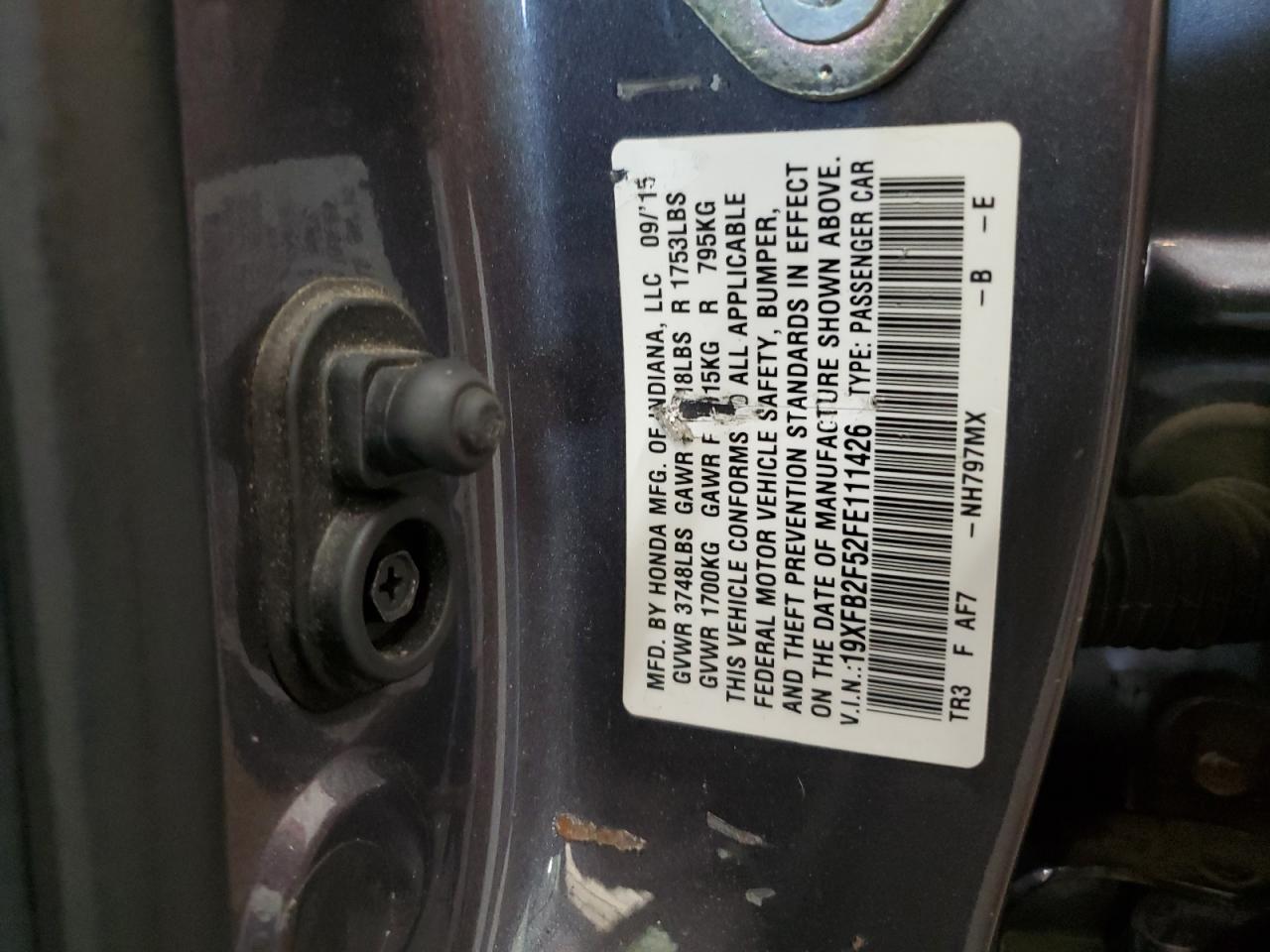 2015 HONDA CIVIC - 19XFB2F52FE111426, колір - Сірий, 1.8, Бензин, із США