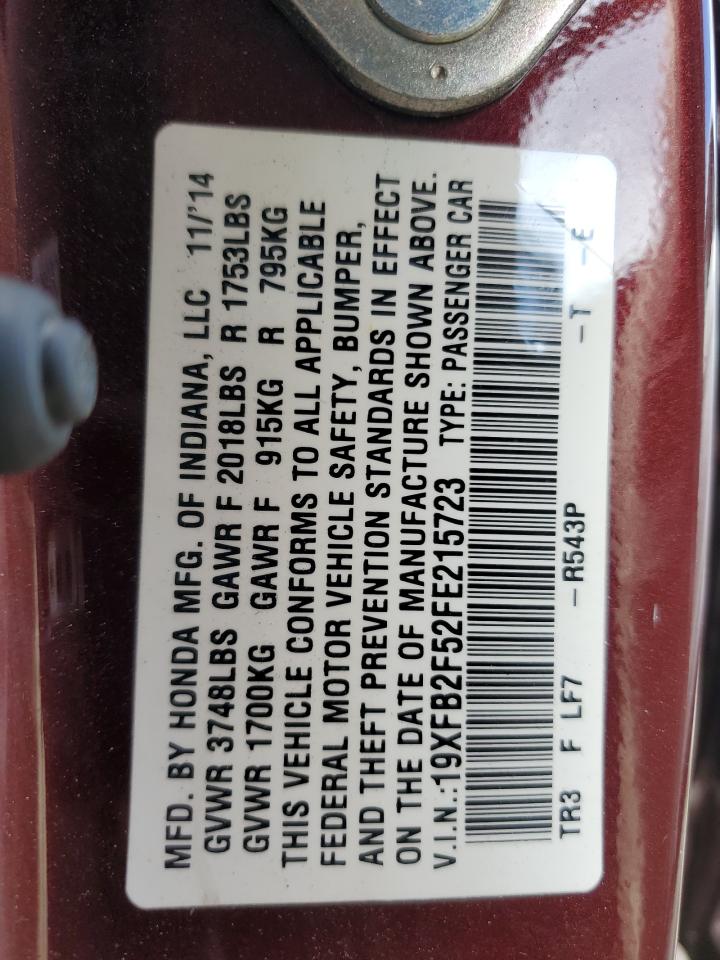 2015 HONDA CIVIC - 19XFB2F52FE215723, колір - Бургундія, 1.8, Бензин, із США