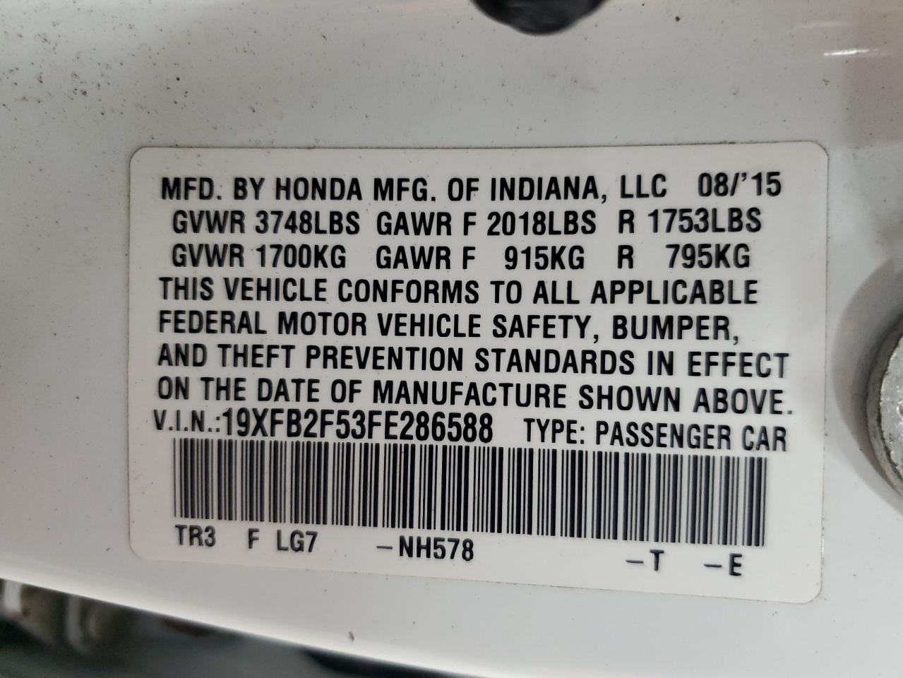 2015 HONDA CIVIC - 19XFB2F53FE286588, колір - Білий, 1.8, Бензин, із США