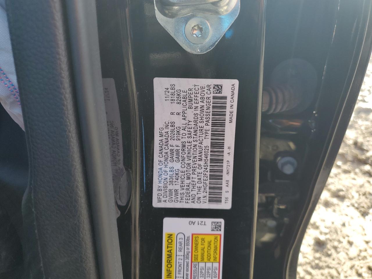 2025 HONDA CIVIC - 2HGFE2F24SH546025, колір - Чорний, 2.0, Бензин, із США