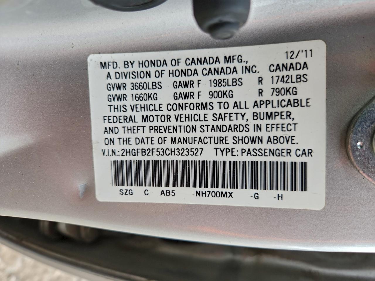 2012 HONDA CIVIC - 2HGFB2F53CH323527, колір - Срібний, 1.8, Бензин, із США