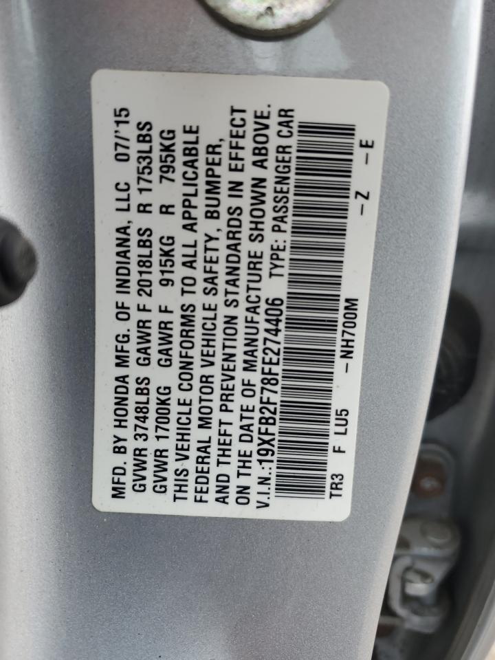 2015 HONDA CIVIC - 19XFB2F78FE274406, колір - Срібний, 1.8, Бензин, із США