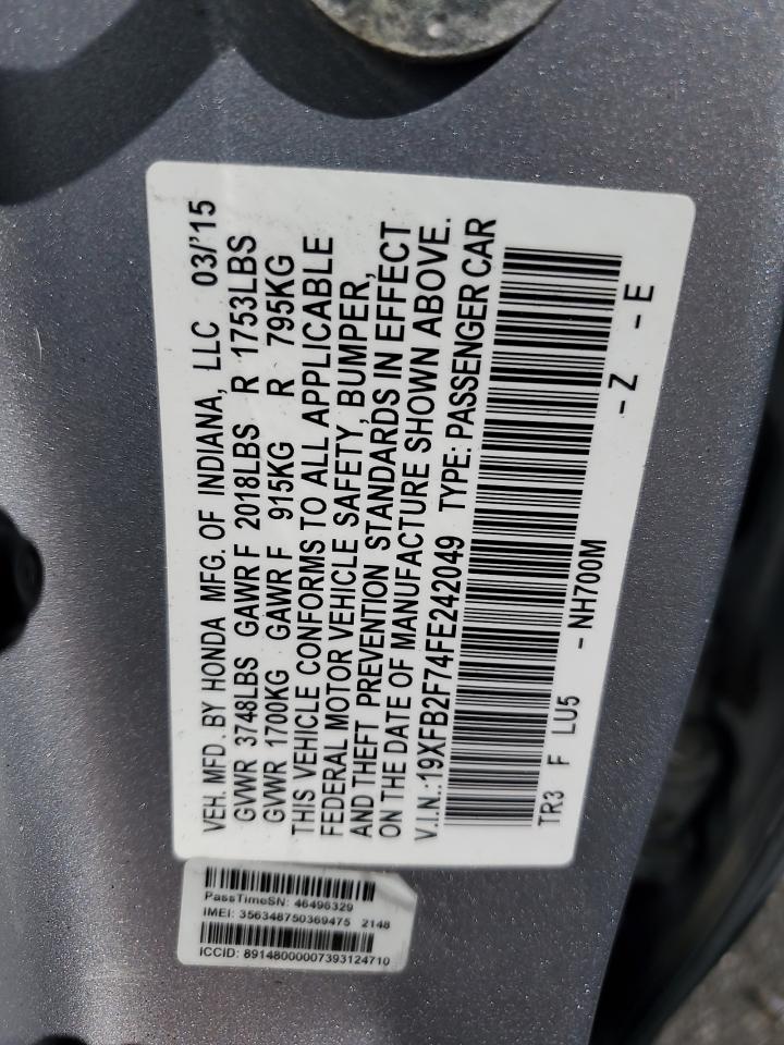2015 HONDA CIVIC - 19XFB2F74FE242049, колір - Срібний, 1.8, Бензин, із США