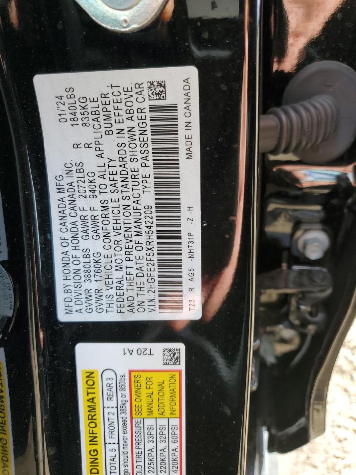 2024 HONDA CIVIC - 2HGFE2F5XRH542209, колір - Чорний, 2.0, Бензин, із США