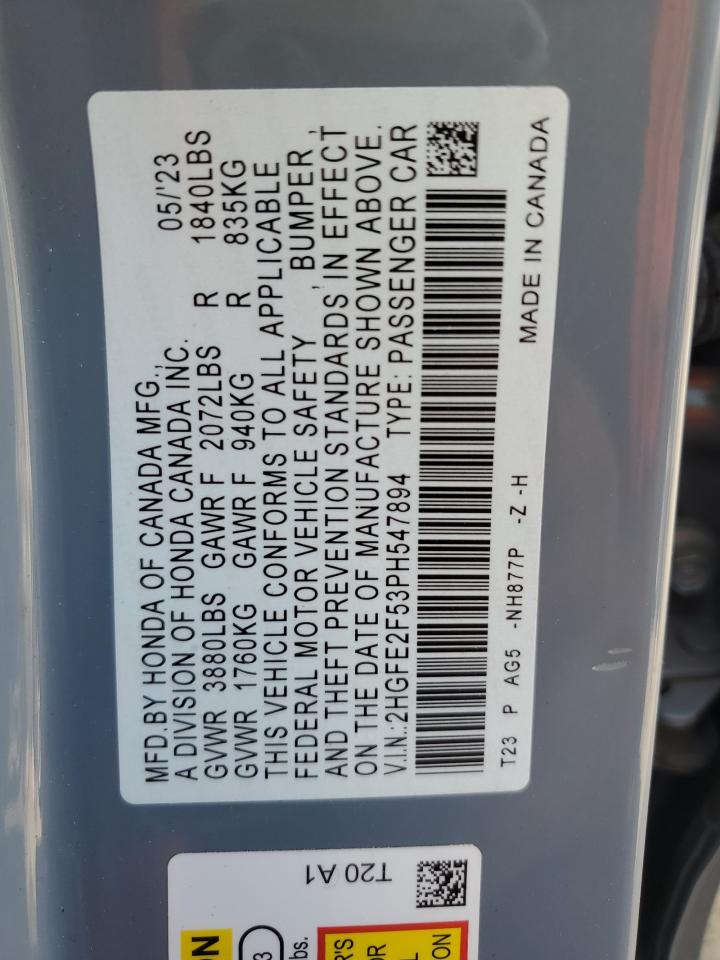 2023 HONDA CIVIC - 2HGFE2F53PH547894, колір - Сірий, 2.0, Бензин, із США