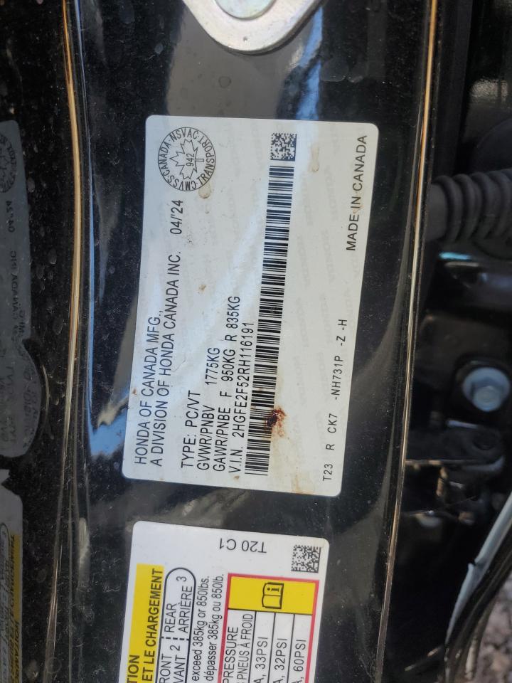 2024 HONDA CIVIC - 2HGFE2F52RH116191, колір - Чорний, 2.0, Бензин, із США