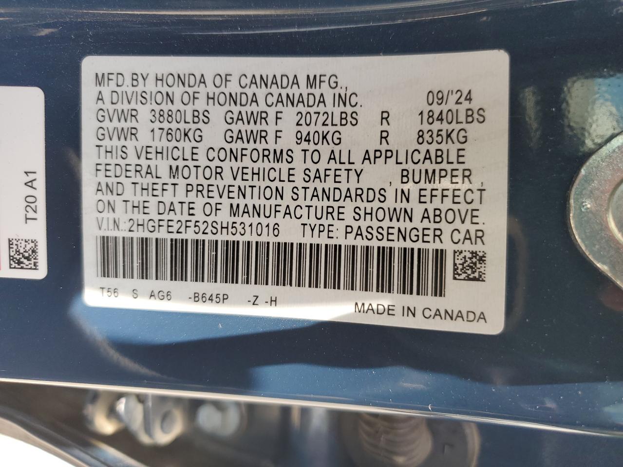2025 HONDA CIVIC - 2HGFE2F52SH531016, колір - Синій, 2.0, Бензин, із США