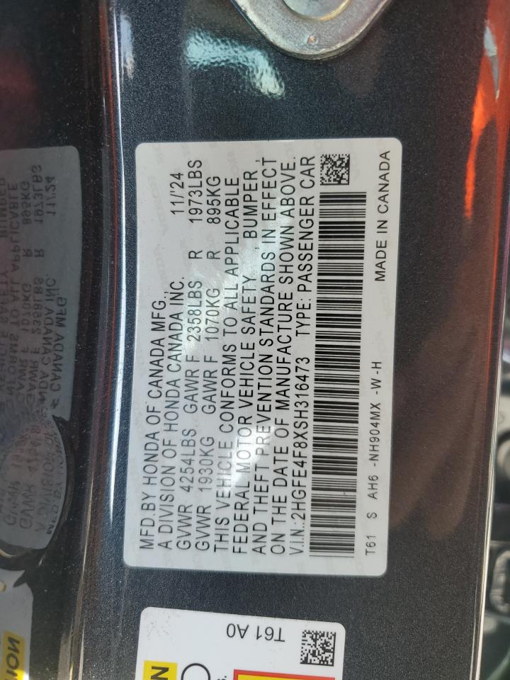 2025 HONDA CIVIC - 2HGFE4F8XSH316473, колір - Деревне вугілля, 2.0, Гібрид, із США