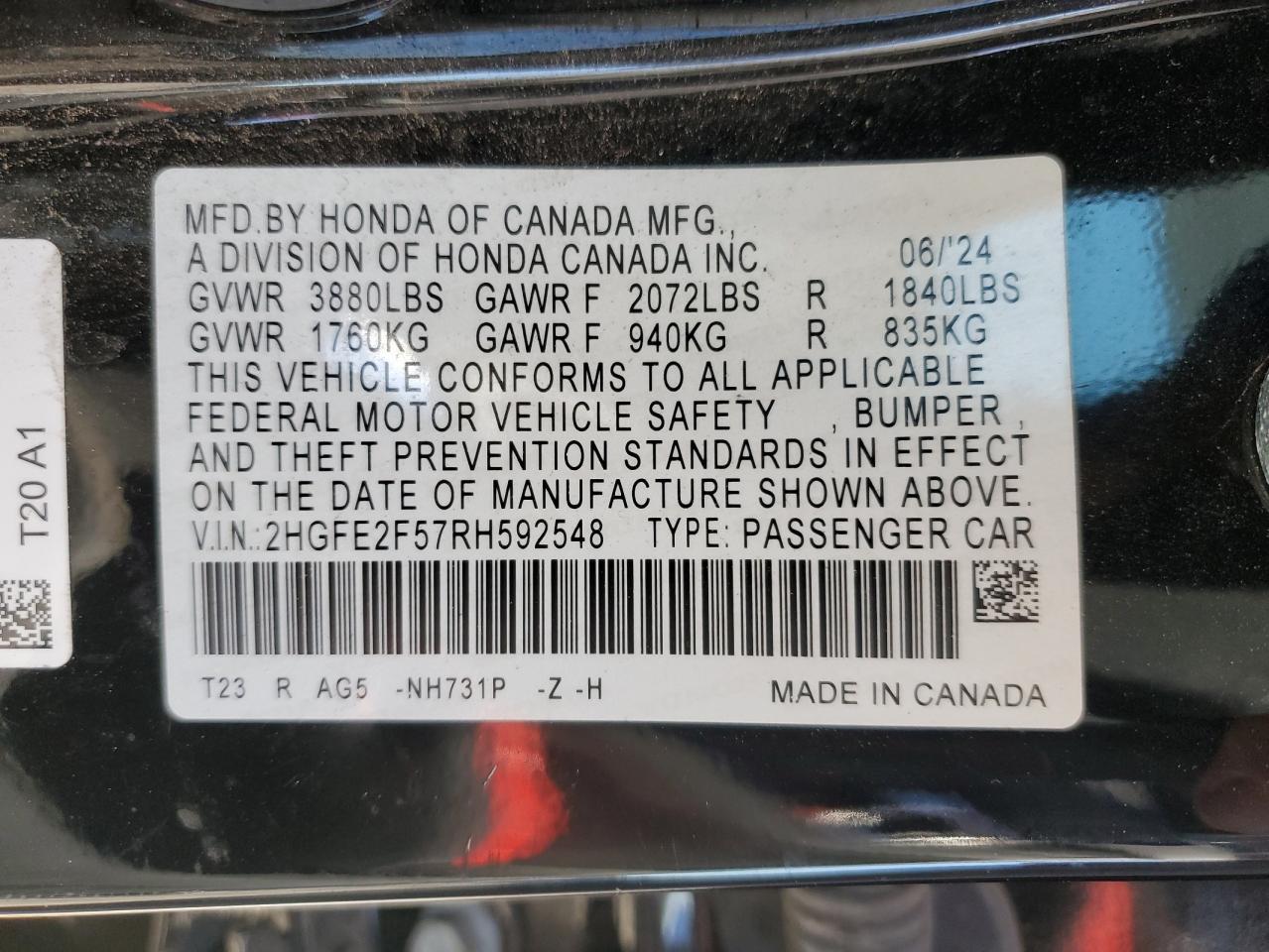 2024 HONDA CIVIC - 2HGFE2F57RH592548, колір - Чорний, 2.0, Бензин, із США