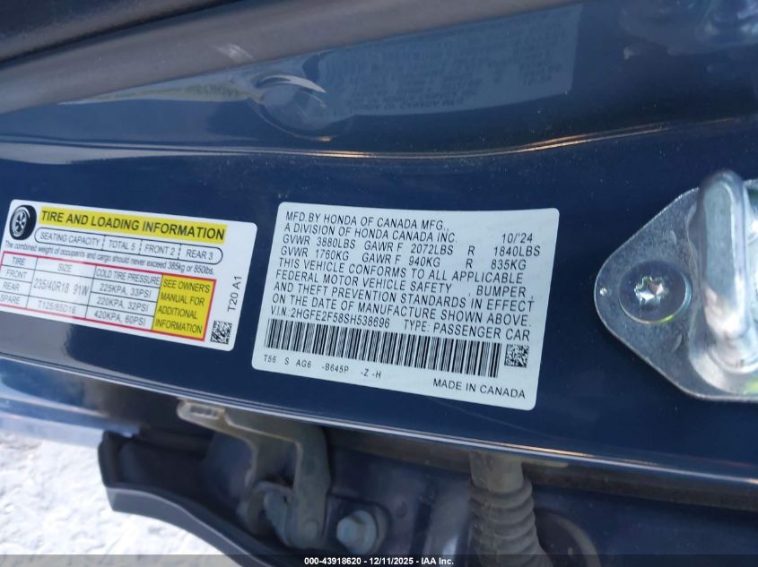 2025 HONDA CIVIC - 2HGFE2F58SH538696, колір - Синій, 2.0, Бензин, Передній привід із США