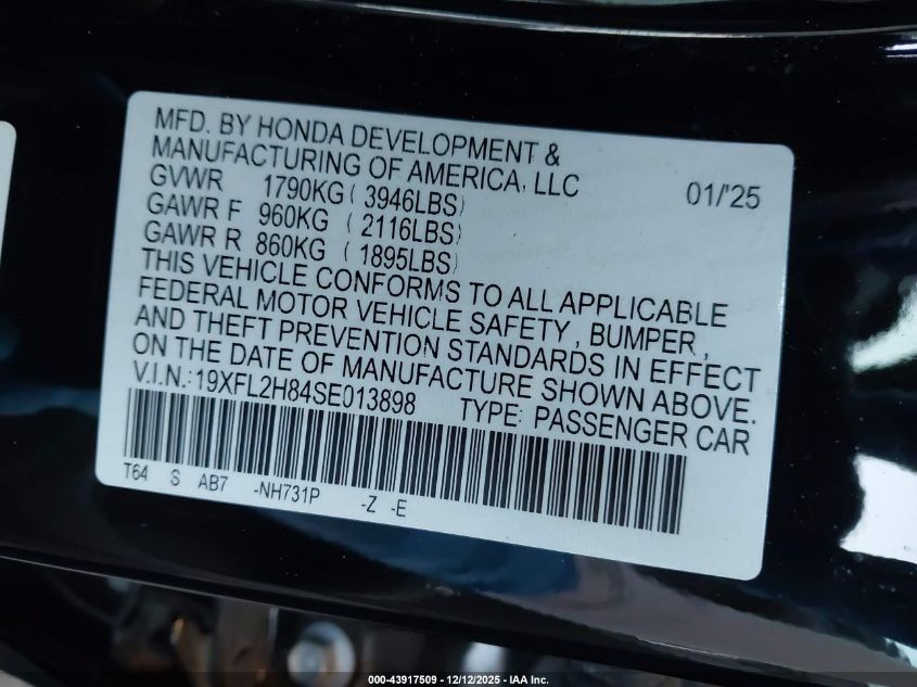2025 HONDA CIVIC - 19XFL2H84SE013898, колір - Чорний, 2.0, Бензин, Передній привід із США
