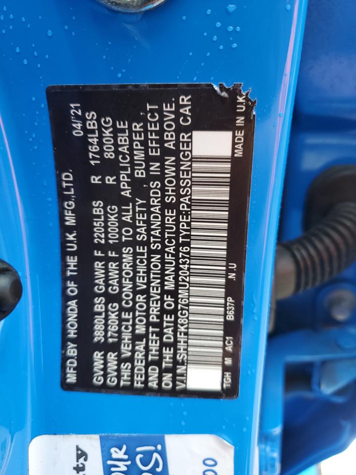 2021 HONDA CIVIC - SHHFK8G76MU204376, колір - Синій, 2.0, Бензин, із США