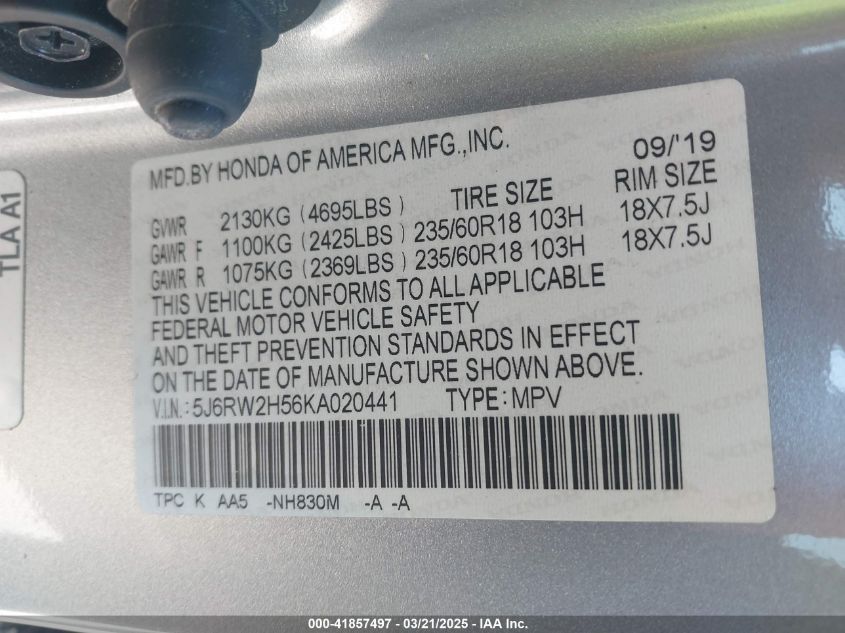 2019 HONDA CR-V - 5J6RW2H56KA020441, колір - Срібний, 1.5, Бензин, Повний привід із США