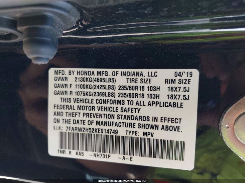 2019 HONDA CR-V - 7FARW2H52KE014749, колір - Чорний, 1.5, Бензин, Повний привід із США