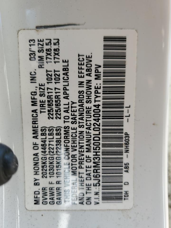 2013 HONDA CR-V - 5J6RM3H50DL024004, колір - Білий, 2.4, Бензин, із США