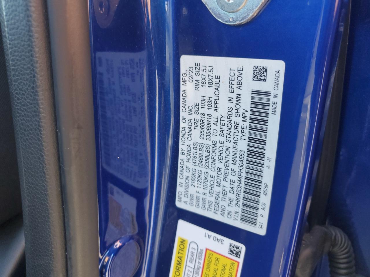 2023 HONDA CR-V - 2HKRS3H44PH304553, колір - Синій, 1.5, Бензин, із США