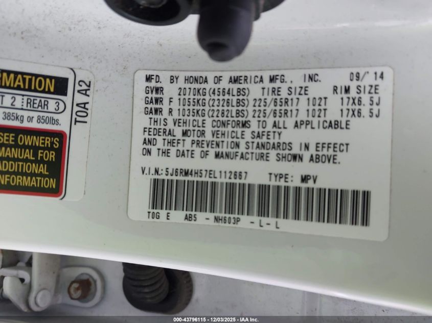 2014 HONDA CR-V - 5J6RM4H57EL112667, колір - Білий, 2.4, Бензин, Повний привід із США