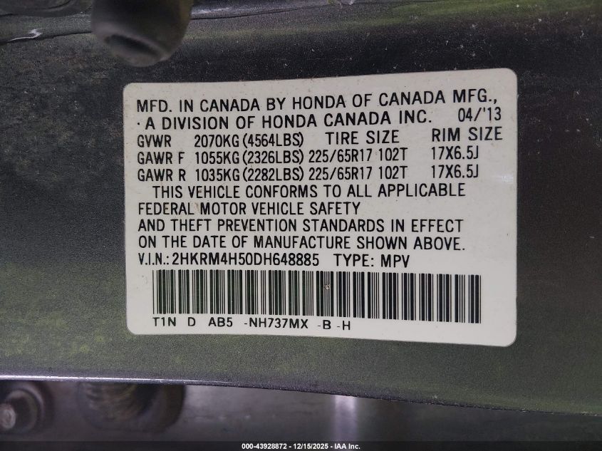Колір СинійЦиліндри 4Привід Повний привідVIN 2HKRM4H50DH648885Стан Заводиться та їде (перевірено)Ушкодження Передня або задня