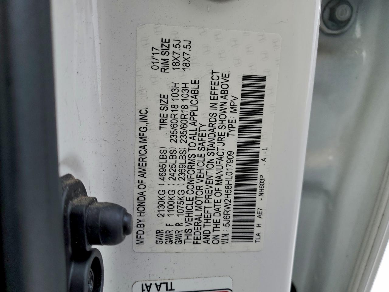 Колір БілийЦиліндри 4Привід Повний привідVIN 5J6RW2H58HL017909Стан ЗаводитьсяУшкодження Звичайний зносДата аукціона 2025-12-18