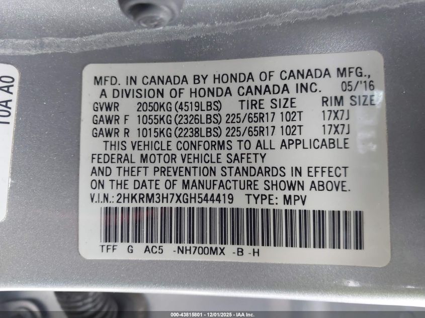 2016 HONDA CR-V TOURING