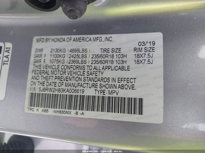 2019 HONDA CR-V - 5J6RW2H83KA006619, колір - Срібний, 1.5, Бензин, Повний привід із США