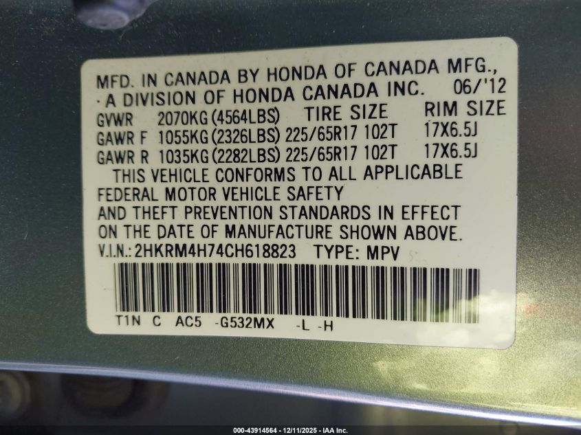 Колір СинійЦиліндри 4Привід Повний привідVIN 2HKRM4H74CH618823Стан Заводиться та їде (перевірено)Ушкодження НезначніДата аукціона 2025-12-22
