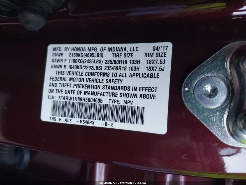 2017 HONDA CR-V - 7FARW1H89HE004605, колір - Червоний, 1.5, Бензин, Передній привід із США