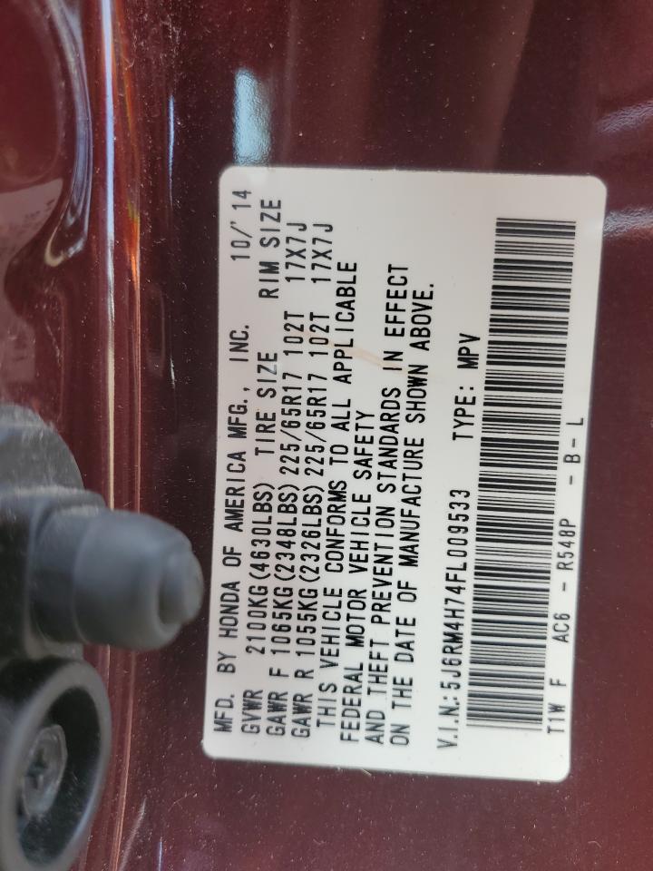 2015 HONDA CR-V - 5J6RM4H74FL009533, колір - Бургундія, 2.4, Бензин, Повний привід із США