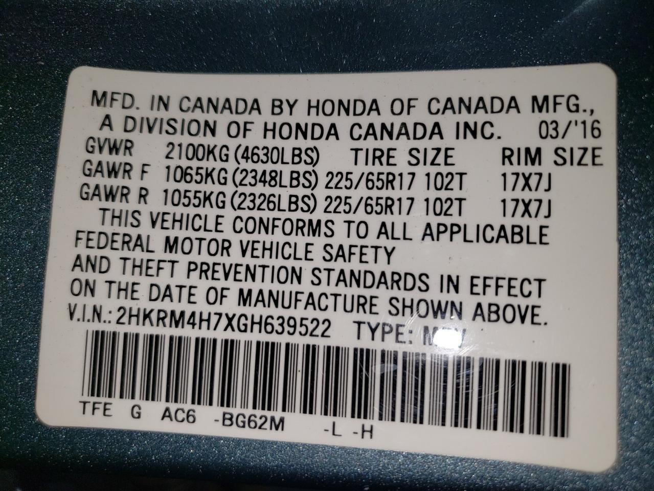 2016 HONDA CR-V - 2HKRM4H7XGH639522, колір - Бірюзовий, 2.4, Бензин, Повний привід із США