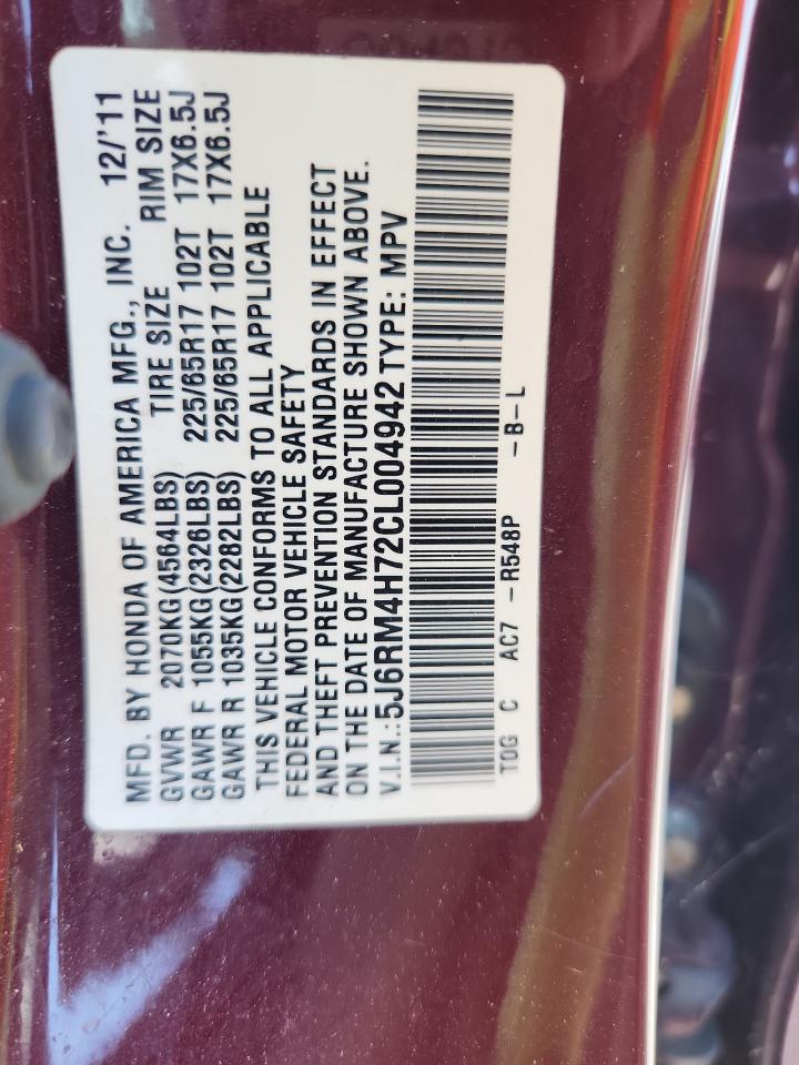 2012 HONDA CR-V - 5J6RM4H72CL004942, колір - Бургундія, 2.4, Бензин, Повний привід із США