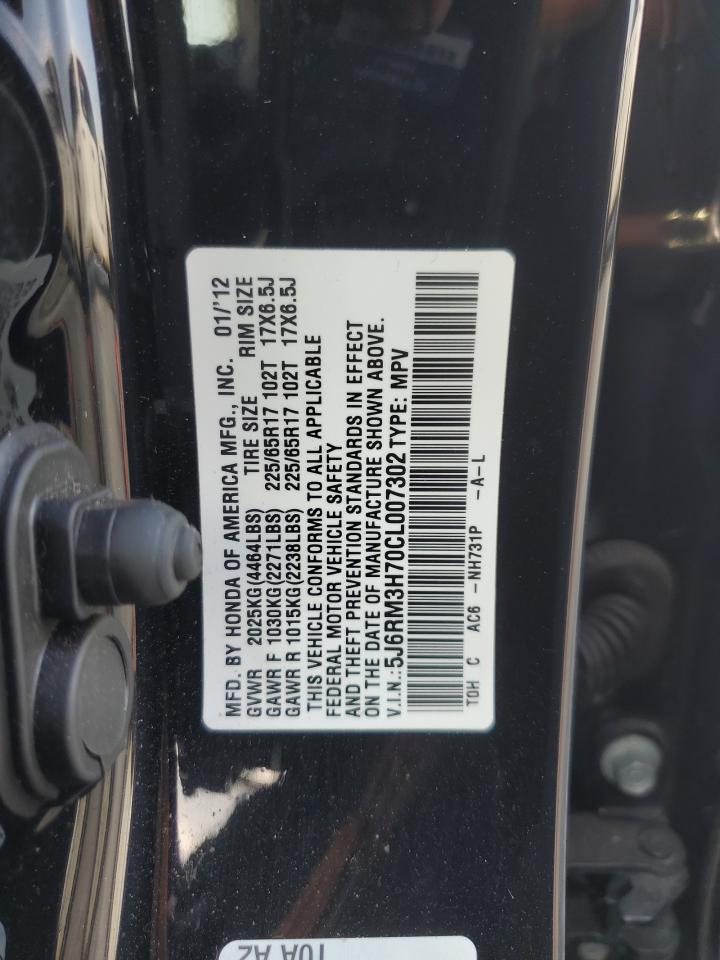 2012 HONDA CR-V - 5J6RM3H70CL007302, колір - Чорний, 2.4, Бензин, із США