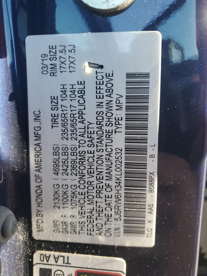 2019 HONDA CR-V - 5J6RW6H34KL002532, колір - Синій, 2.4, Бензин, Повний привід із США