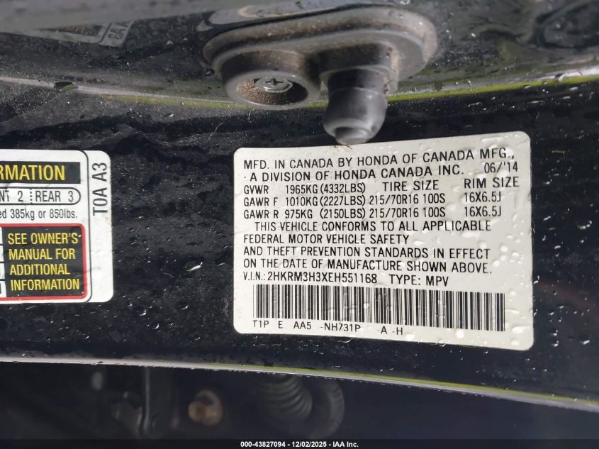 2014 HONDA CR-V - 2HKRM3H3XEH551168, колір - Чорний, 2.4, Бензин, Передній привід із США