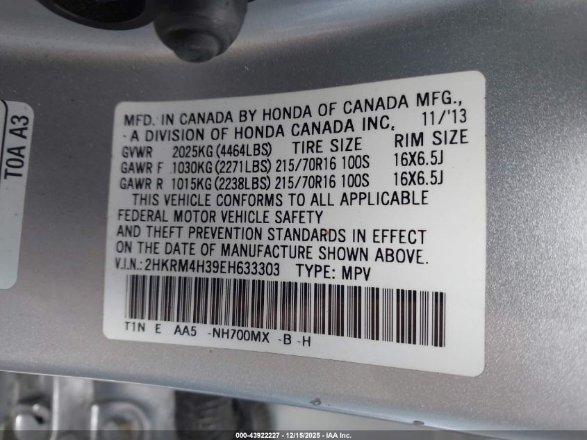 2014 HONDA CR-V - 2HKRM4H39EH633303, колір - Срібний, 2.4, Бензин, Повний привід із США