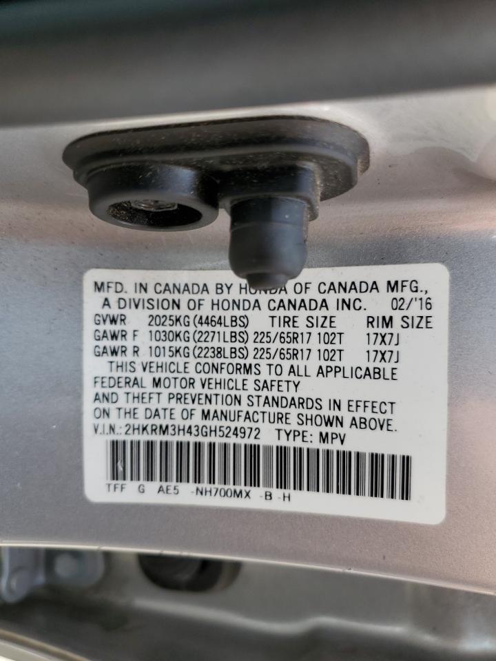 2016 HONDA CR-V - 2HKRM3H43GH524972, колір - Срібний, 2.4, Бензин, із США