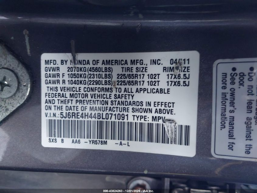 Колір ЗолотийЦиліндри 4Привід Повний привідVIN 5J6RE4H44BL071091Стан Заводиться та їде (перевірено)Ушкодження Передня або задня