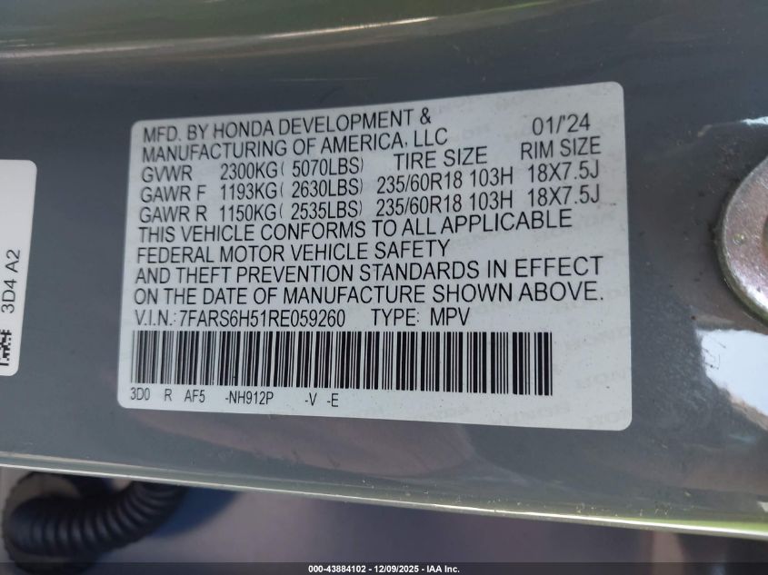 2024 HONDA CR-V HYBRID - 7FARS6H51RE059260, колір - Сірий, 2.0, Гібрид, Повний привід із США