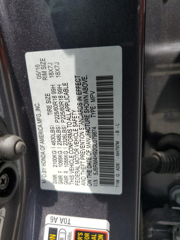 2016 HONDA CR-V - 5J6RM4H92GL079874, колір - Сірий, 2.4, Бензин, Повний привід із США