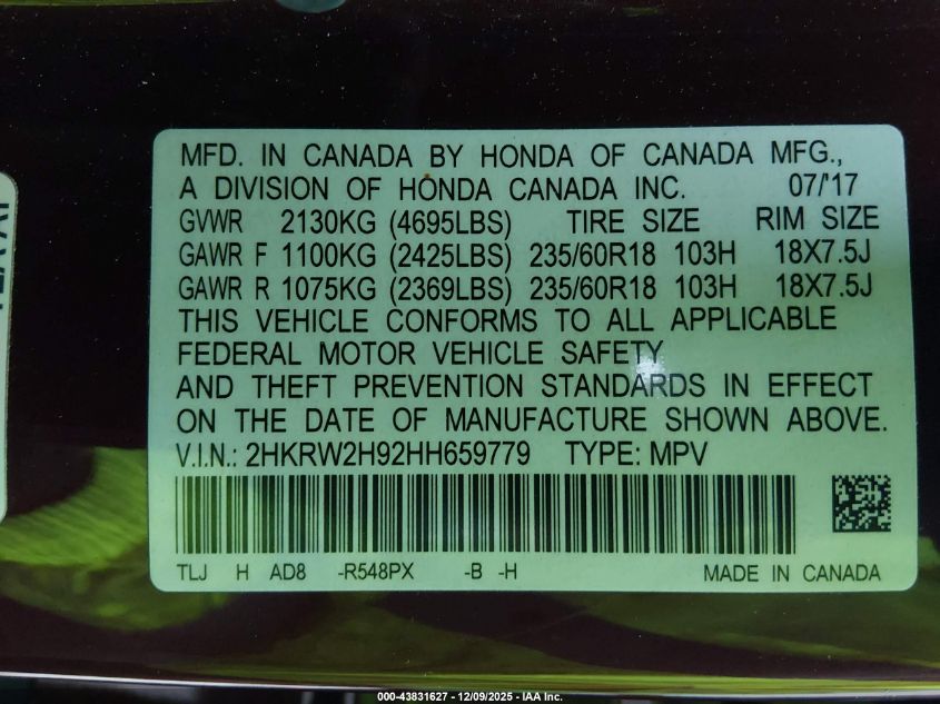 Колір БургундіяЦиліндри 4Привід Повний привідVIN 2HKRW2H92HH659779Стан Заводиться та їде (перевірено)Ушкодження Ліва сторона