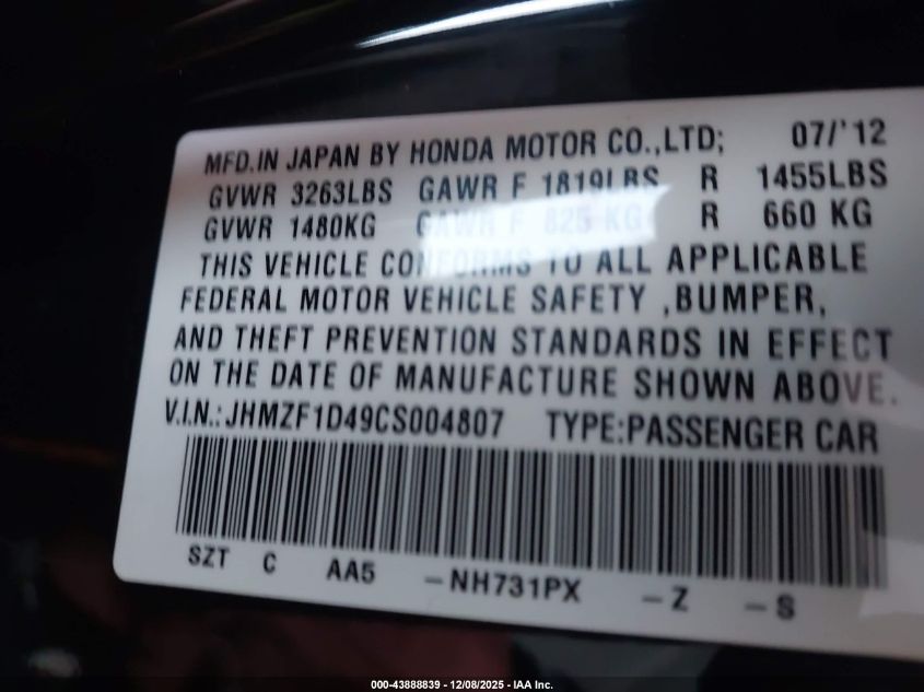2012 HONDA CR-Z EX