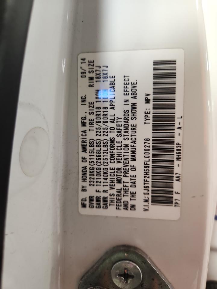 2015 HONDA CROSSTOUR - 5J6TF2H59FL000278, колір - Білий, 3.5, Бензин, Повний привід із США
